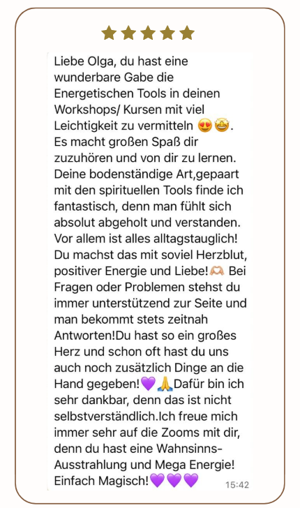 - du Methoden lernen möchtest, mit denen du deine Energie jederzeit selbst aktivieren kannst – unabhängig und nachhaltig.