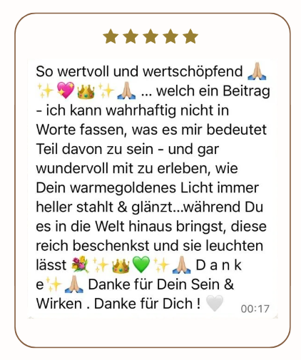 ✔ Genau deshalb habe ich Power & Glow entwickelt: Das Programm kombiniert modernste Energiearbeit, Ayurveda & Smart Habits – alltagstauglich und wissenschaftlich nachvollziehbar.
